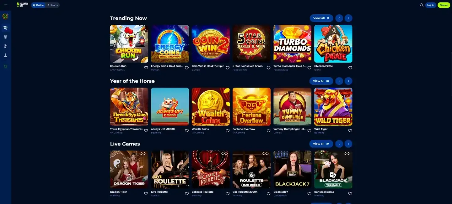 The BillionaireSpin app features our complete game library including slots, progressive jackpots, live dealer tables, blackjack, roulette, and video poker. All games are optimized for mobile play with smooth graphics and intuitive controls. You’ll enjoy titles from leading providers like Microgaming, NetEnt, and Pragmatic Play.