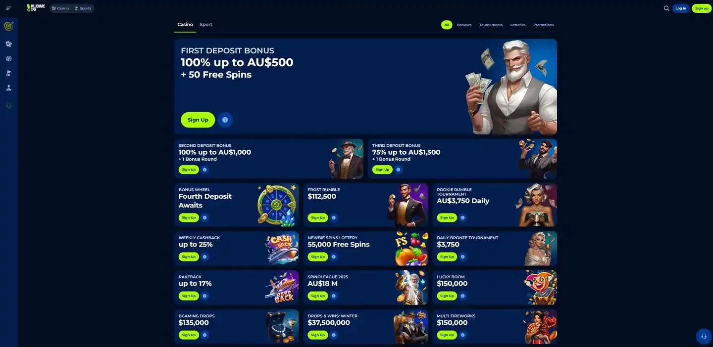 Beyond the welcome package, Billionaire Spin Casino offers various casino promotions for loyal players including casino reload bonuses on subsequent deposits, weekly Billionaire Spin Casino free spins, cashback offers, and tournament competitions. The BillionaireSpin bonus program is designed to reward regular play with special offers casino-wide. Visit the promotions tab frequently to discover the latest casino game bonuses and limited-time special offers.